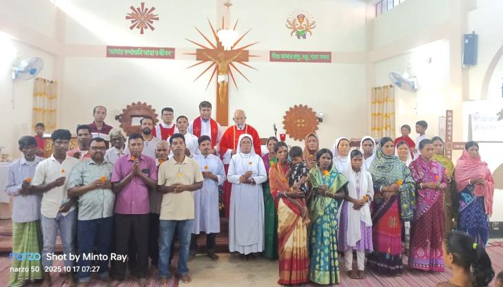 বিশপ মহোদয়ের উদ্বোধনী ভূমিকা, ফিতা কাটা, চাবি হস্তান্তর পর্ব, স্মৃতি ফলক উম্মোচন ও গির্জার মূল ফটক খোলার মধ্য দিয়ে গীর্জার ভেতরে প্রবেশের মধ্য দিয়ে নতুন গির্জায় খ্রিষ্টযাগ অপর্ন করা হয়।