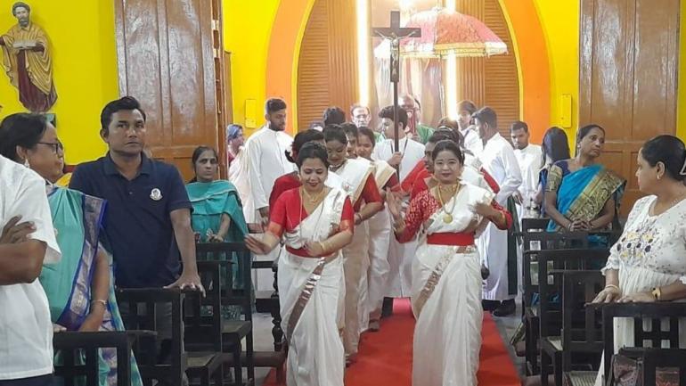 পবিত্র মহা খ্রীষ্টযাগের মধ্য দিয়ে অনুষ্ঠানের শুভ সূচনা হয়। সকাল ৮টায় বাংলা, হিন্দি ও ইংরাজি এই মিশ্র ভাষায় খ্রীষ্টযাগ অনুষ্ঠিত হয়। প্রবেশিকা নৃত্যের মাধ্যমে পুরোহিতগণকে বেদীতে বরণ করে নেওয়া হয়।