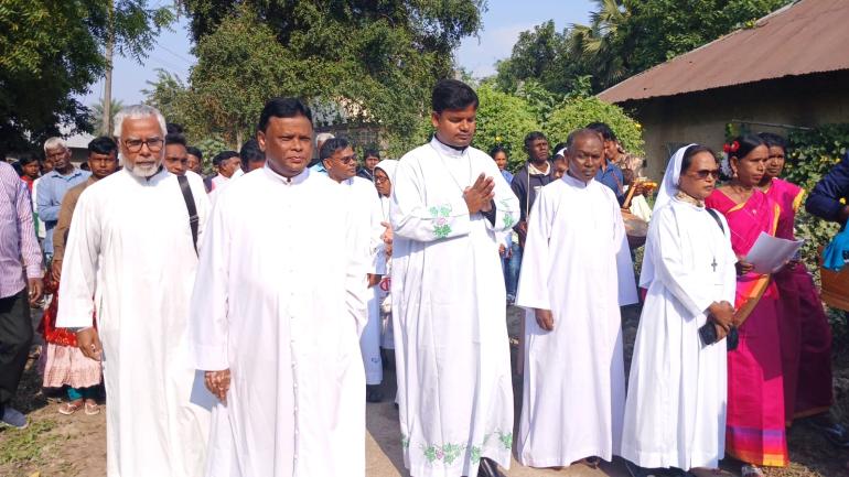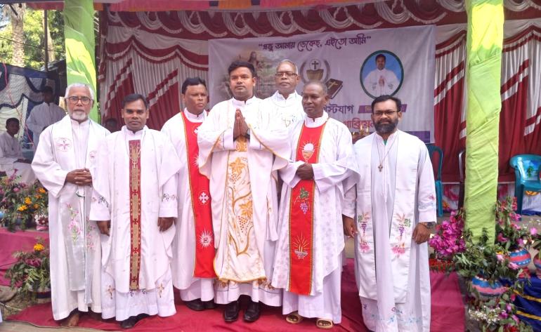 খ্রিস্টযাগের পূর্বে নবঅভিষিক্ত যাজক ও অন্যান্য অতিথিদের সান্তালী দাশাই নৃত্য ও পা ধোঁয়ানোর মাধ্যমে বরণ করে নেওয়া হয়।
