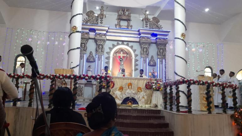 মহা খ্রীষ্টযাগের মধ্য দিয়ে বড়দিনের মিলন অনুষ্ঠানের সূচনা হয়। সকাল ৯ টা ৩০মি. খ্রীষ্টযাগ শুরু হয়। একাধিক পুরোহিত সম্মিলিত ভাবে খ্রীষ্টযাগ উদযাপন করেন। পৌরহিত্য করেন প্রাক্তন বিশপ সালভাদোর লোবো।সহযোগিতা করেন ফ: অবনীন্দ্র ও ফ: দীপক এক্কা।