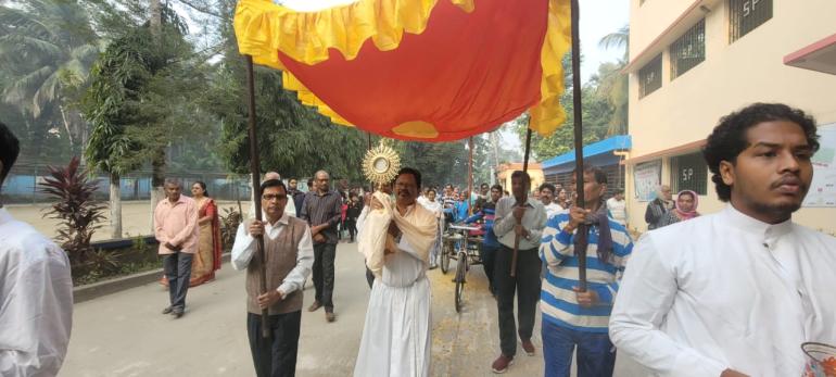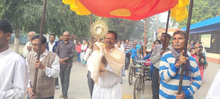 শোভাযাত্রা শুরুতে সকল খ্রীষ্টভক্ত সমাবেত হন, এরপর পবিত্র সাক্রামেন্টের আরাধনা স্তুতি করা হয়। শোভাযাত্রা সহযোগে সকল খ্রীষ্টভক্ত এগিয়ে যায় গির্জা প্রাঙ্গণের দিকে।