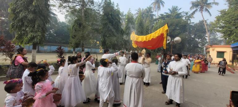 বিগত ২৩ শে নভেম্বর ২০২৫ খ্রিষ্টাব্দ, রবিবার সকাল ৬:৩০ মিনিটে ঝাঁঝরা গয়লাডাঙ্গা মোড় থেকে শোভাযাত্রা সহযোগে খ্রীস্ট রাজার পর্ব পালন করা হয়।