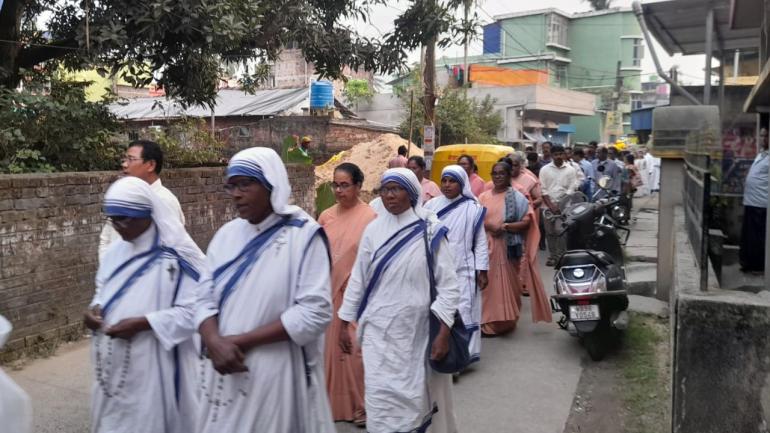 শান্তিপূর্ণ ভাবে শোভাযাত্রা শেষ হয় পল্লীউন্নয়ন সমিতির মুক্ত প্রাঙ্গনে।পবিত্র সংস্কারের আরাধনার মধ্য দিয়েই অনুষ্ঠানের সমাপ্তি হয়।সুন্দর অনুষ্ঠানের জন্য পাল পুরোহিত ফাদার দীপক এক্কা সকলকে আন্তরিক ধন্যবাদ জ্ঞাপন করেন ও সকলকে চা পানের নিমন্ত্রণ জানান। প্রতিবেদন – চন্দনা রোজারিও।