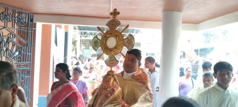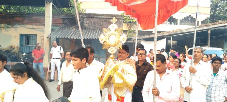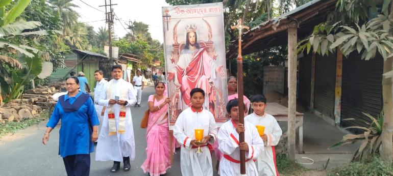 বিকেলে, ঠিক ২:৩০ মিনিটে, গির্জা প্রাঙ্গণ থেকে খ্রিষ্ট রাজার শোভাযাত্রা শুরু হয় পবিত্র সাক্রামেন্ট নিয়ে। গান, প্রার্থনা এবং ভক্তির আবহে বিশ্বাসীরা শোভাযাত্রা করে সেন্ট অ্যান্থনিস গির্জা, কেওড়াপুকুরে পৌঁছান। সেখানে অনুষ্ঠিত হয় আরাধনা, ভজন ও প্রার্থনার বিশেষ আয়োজন।
